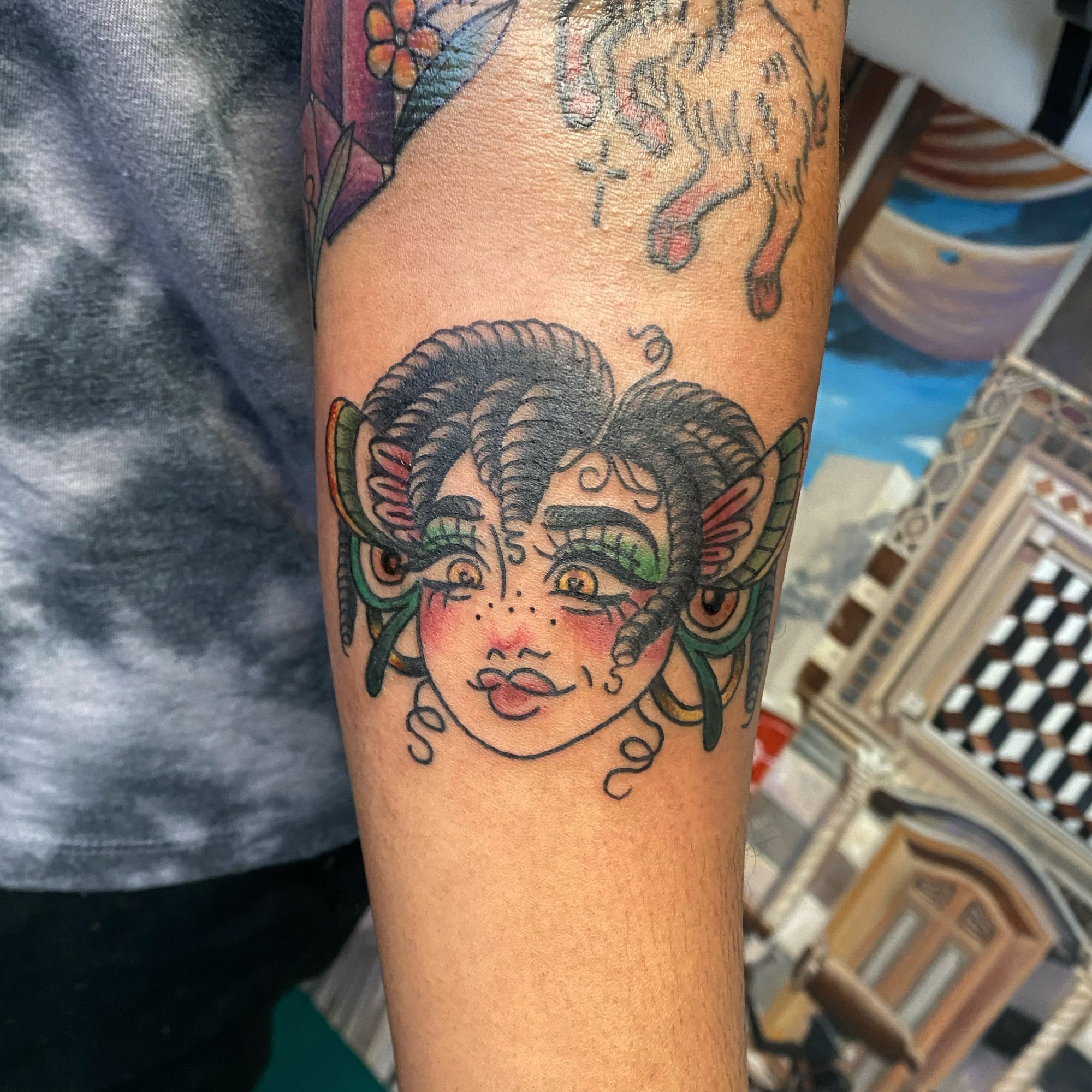 We are proud to be a native, all femme tattoo shop and art gallery located seconds from Lakebottom Park. We are happy to provide tattoos to Columbus, Georgia, Ft. Moore, Phenix City, and anyone else down to make the trip. We offer a variety of artists, capable of bold traditional, whimsical illustrative, detailed fine-lines, or anything in between. Whether you are asking for a custom design, flash, or bringing in a reference, we will always try to find the right artist for you. Our shop is fully wheelchair accessible, with the option for private sessions, quiet appointments, or low sensory input upon request. We aim to be as inclusive as possible, so feel free to ask your artist for any accommodations you may need and we shall do our best to provide them.