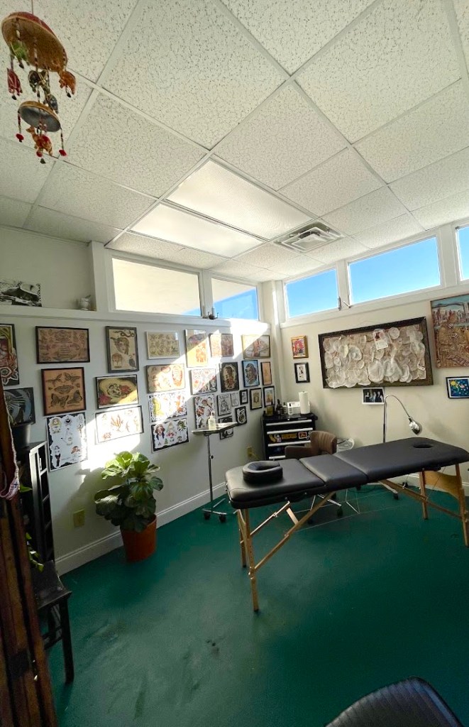 “I love the atmosphere in the shop, it’s very comfortable and feels private, with fantastic art on the walls and a nice waiting / check in area. The artists are of course amazing, and I’ve personally never gotten work from them that I wasn’t in love with. From flash to pieces I was very picky about the details of, they’ve always been enthusiastic and supportive of me leaving with a smile and exactly what I was hoping for. Their prices are incredibly fair, the shop is always perfectly clean, they know what they’re doing and do it well ! I recommend this shop to everyone – this is a local business well worth supporting (: “